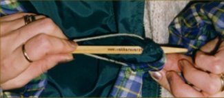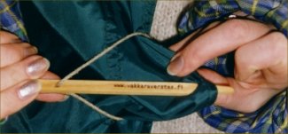 3. Vedä kangasta narulenkistä läpi niin paljon, että tikku irtoaa.
