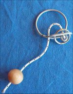 Pujota sormus aukosta yläkautta ja kuljeta se rautalangan päätykiemuran alta.